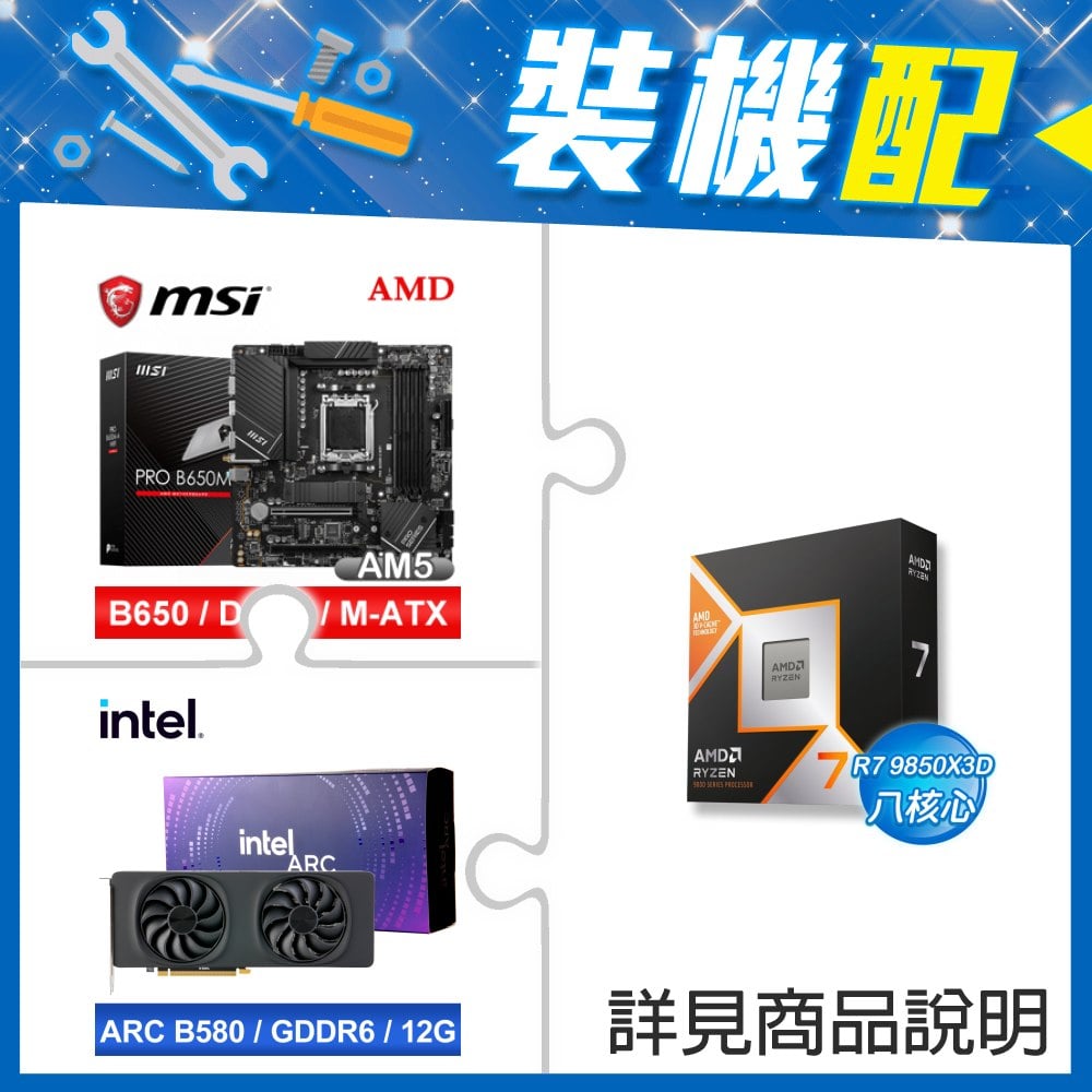 ☆裝機配★ AMD R7 9850X3D+微星 PRO B650M-A WIFI D5 M-ATX主機板+Intel Arc B580 12G 20 Core 顯示卡