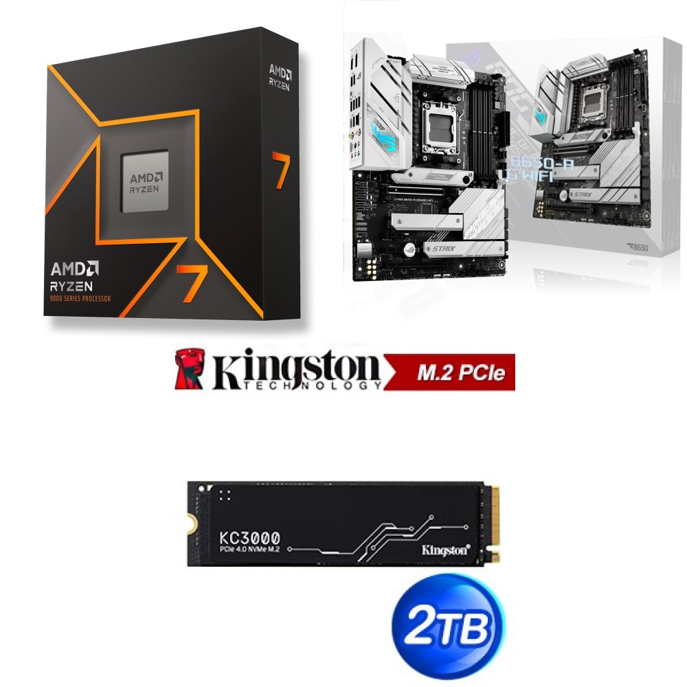 ☆裝機配★ AMD R7 9700X+華碩 ROG STRIX B650-A GAMING WIFI ATX主機板+金士頓 KC3000 2TB PCIe 4.0 NVMe M.2 SSD