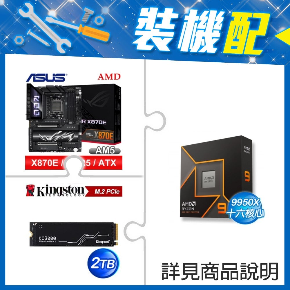 ☆裝機配★ AMD R9 9950X+華碩 ROG CROSSHAIR X870E HERO ATX主機板+金士頓 KC3000 2TB PCIe 4.0 NVMe M.2 SSD