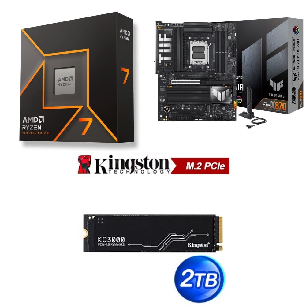 ☆裝機配★ AMD R7 9700X+華碩 TUF GAMING X870-PLUS WIFI ATX主機板+金士頓 KC3000 2TB PCIe 4.0 NVMe M.2 SSD