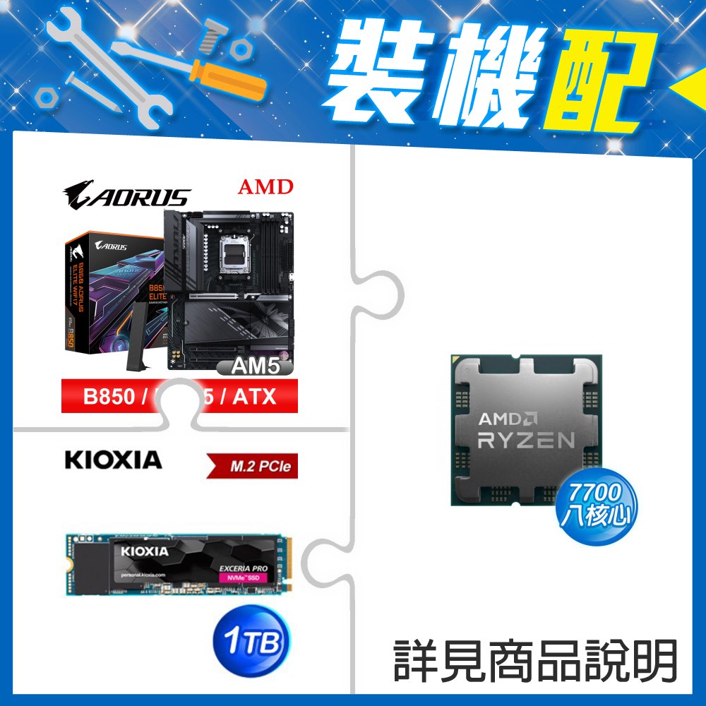 ☆裝機配★ AMD R7 7700 MPK+技嘉 B850 AORUS ELITE WIFI7 ATX主機板+鎧俠 EXCERIA PRO 1TB PCIe Gen4x4 SSD