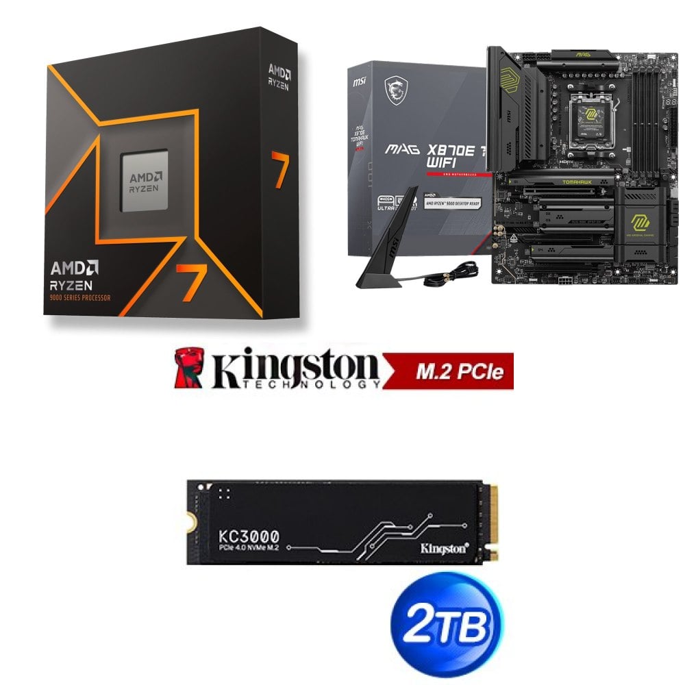 ☆裝機配★ AMD R7 9700X+微星 MAG X870 TOMAHAWK WIFI ATX主機板+金士頓 KC3000 2TB PCIe 4.0 NVMe M.2 SSD