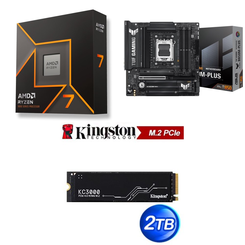 ☆裝機配★ AMD R7 9700X+華碩 TUF GAMING B850-PLUS WIFI ATX主機板+金士頓 KC3000 2TB PCIe 4.0 NVMe M.2 SSD