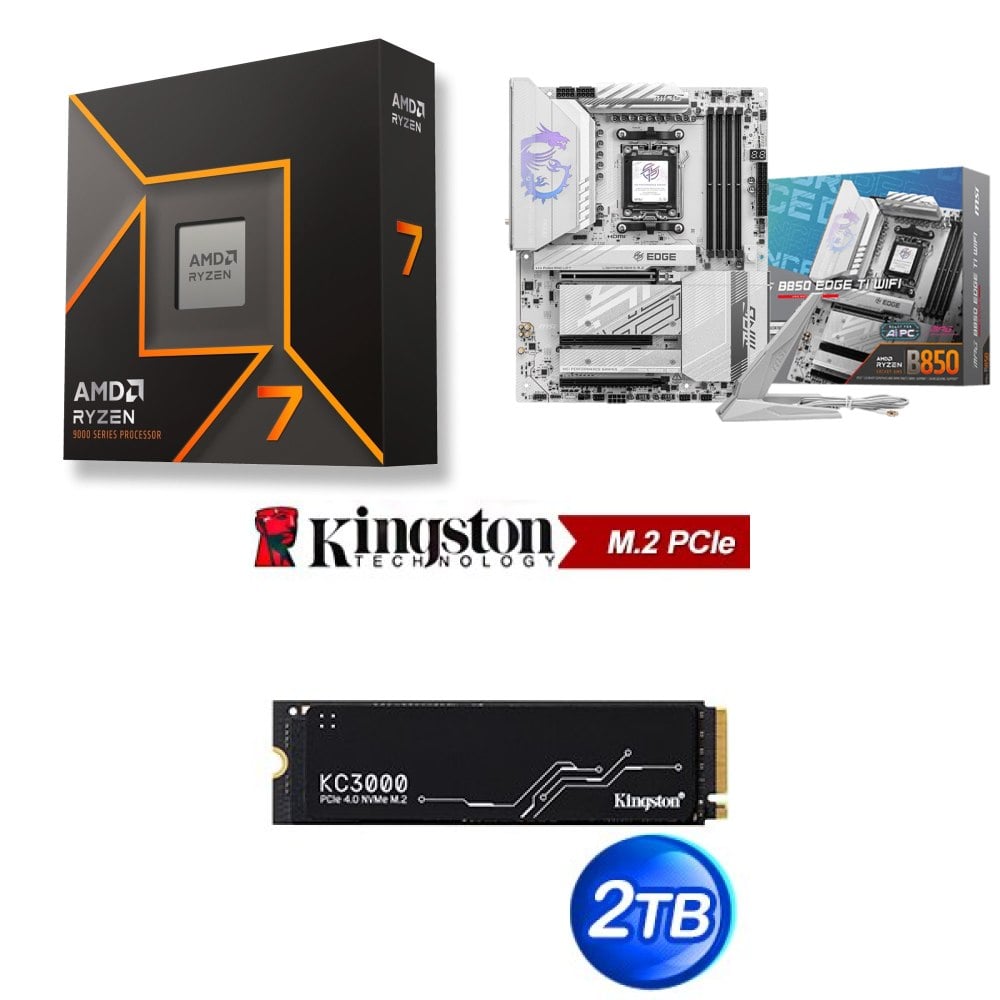 ☆裝機配★ AMD R7 9700X+微星 MPG B850 EDGE TI WIFI ATX主機板+金士頓 KC3000 2TB PCIe 4.0 NVMe M.2 SSD
