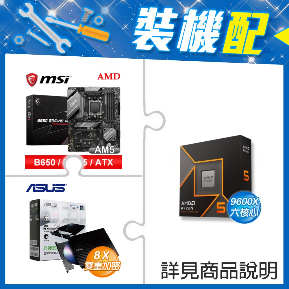 ☆裝機配★ AMD R5 9600X+微星 B650 GAMING PLUS WIFI D5 ATX主機板+華碩 SDRW-08D2S-U 外接式燒錄機《黑》