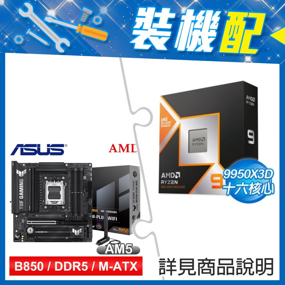☆裝機配★ AMD R9 9950X3D+華碩 TUF GAMING B850M-PLUS WIFI MATX主機板