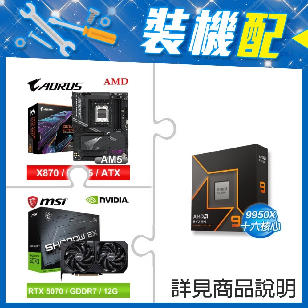 ☆裝機配★ AMD R9 9950X+技嘉 X870 AORUS ELITE WIFI7 ATX主機板+微星 RTX 5070 12G SHADOW 2X OC 顯示卡