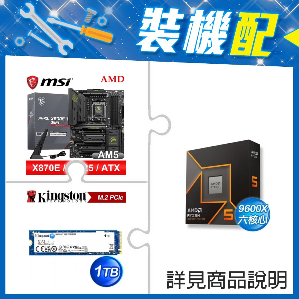☆裝機配★ AMD R9 9900X+微星 MAG X870E TOMAHAWK WIFI ATX主機板+金士頓 NV3 1TB M.2 PCIe SSD