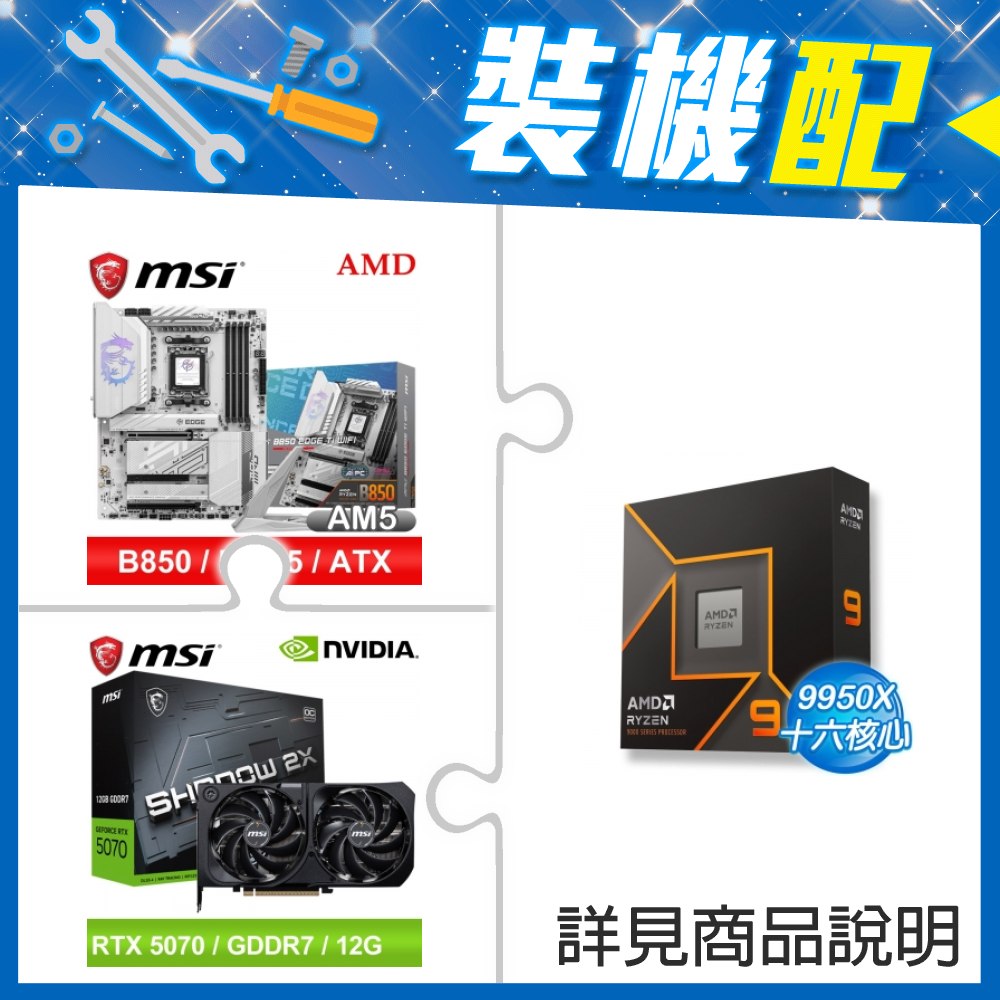 ☆裝機配★ AMD R9 9900X+微星 MAG X870E TOMAHAWK WIFI ATX主機板+微星 RTX 5070 12G SHADOW 2X OC 顯示卡
