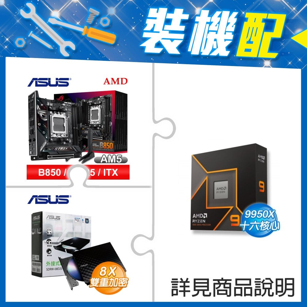 ☆裝機配★ AMD R9 9950X+華碩 ROG STRIX B850-I GAMING WIFI ITX主機板+華碩 SDRW-08D2S-U 外接式燒錄機《黑》