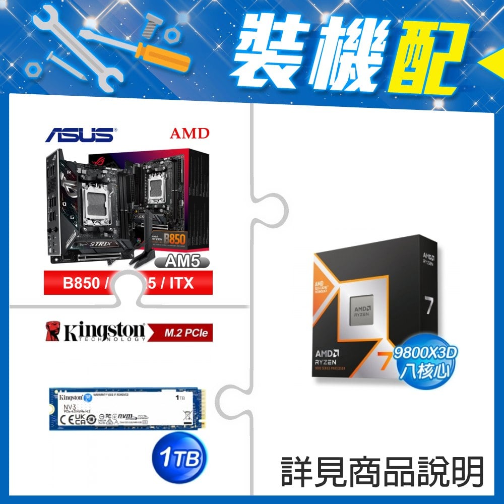 ☆裝機配★ AMD R7 9800X3D+華碩 ROG STRIX B850-I GAMING WIFI ITX主機板+金士頓 NV3 1TB M.2 PCIe SSD