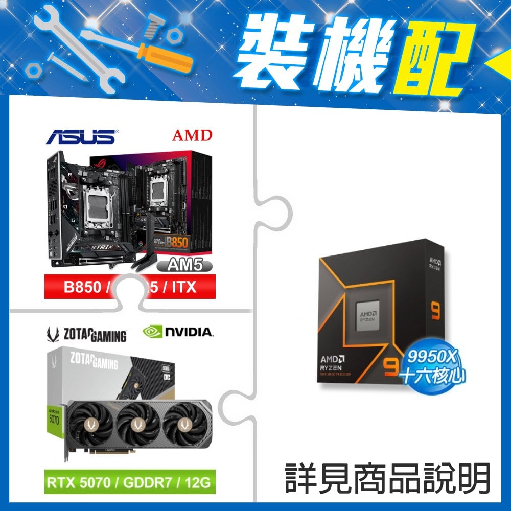 ☆裝機配★ AMD R9 9950X+華碩 ROG STRIX B850-I GAMING WIFI ITX主機板+索泰 RTX 5070 SOLID OC 12G 顯示卡