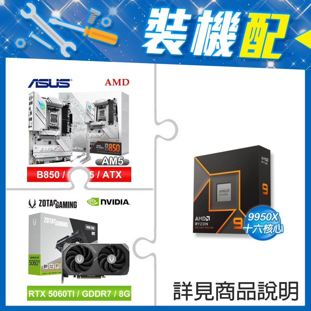 ☆裝機配★ AMD R9 9950X+華碩 ROG STRIX B850-A GAMING WIFI ATX主機板+索泰 RTX 5060 TI 8GB Twin Edge OC 顯示卡