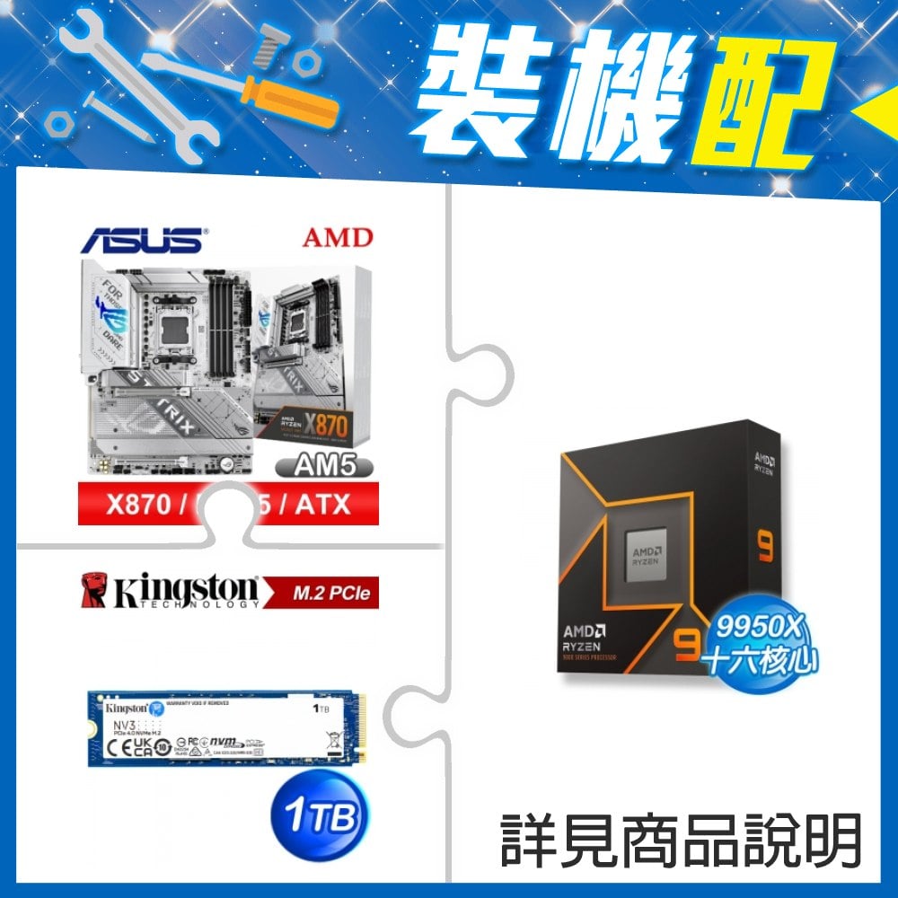 ☆裝機配★ AMD R9 9950X+華碩 ROG STRIX X870-A GAMING WIFI ATX主機板+金士頓 NV3 1TB M.2 PCIe SSD