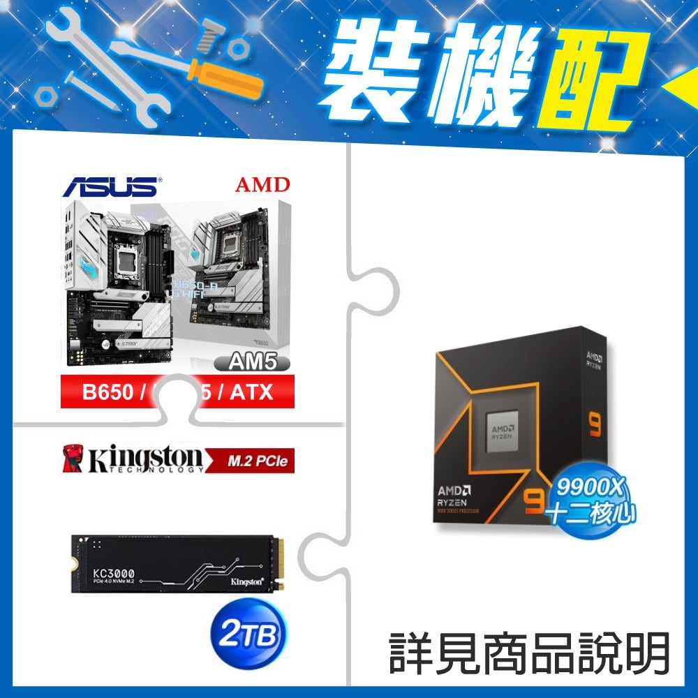 ☆裝機配★ AMD R9 9900X+華碩 ROG STRIX B650-A GAMING WIFI ATX主機板+金士頓 KC3000 2TB PCIe 4.0 NVMe M.2 SSD