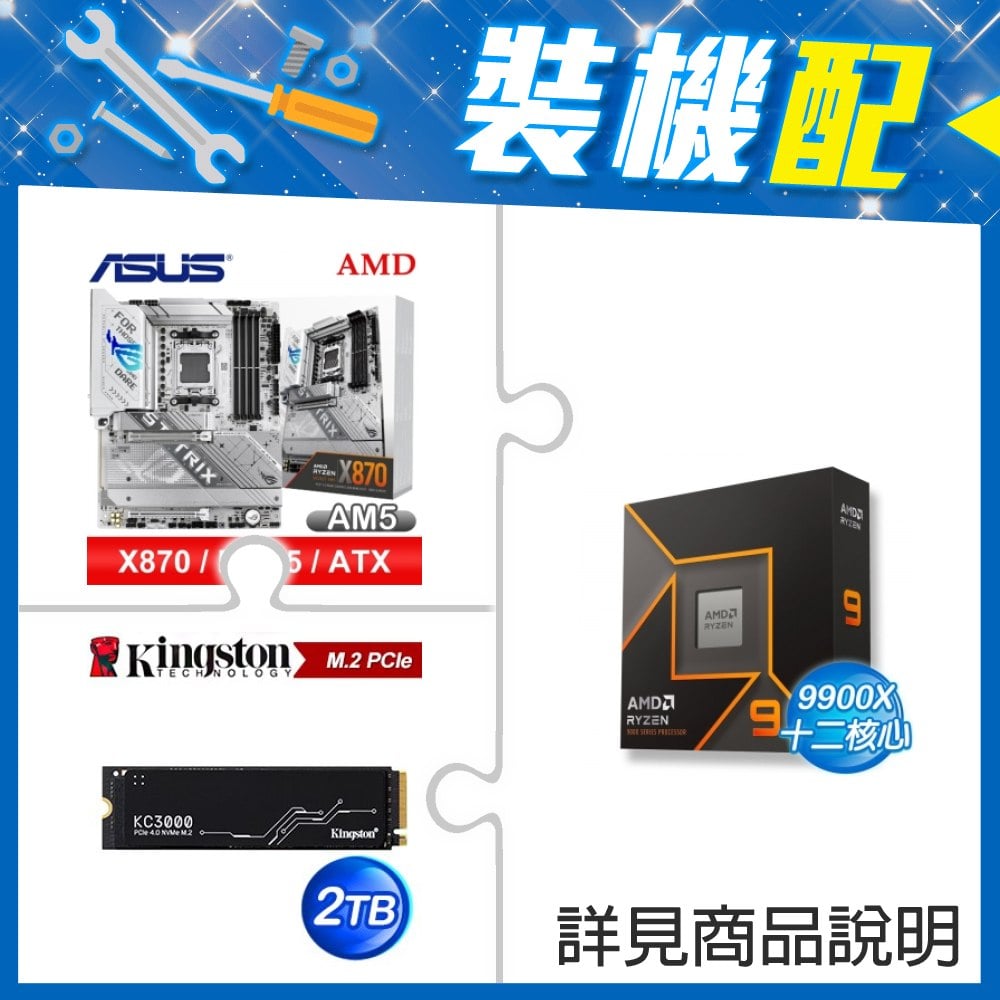 ☆裝機配★ AMD R9 9900X+華碩 ROG STRIX X870-A GAMING WIFI ATX主機板+金士頓 KC3000 2TB PCIe 4.0 NVMe M.2 SSD