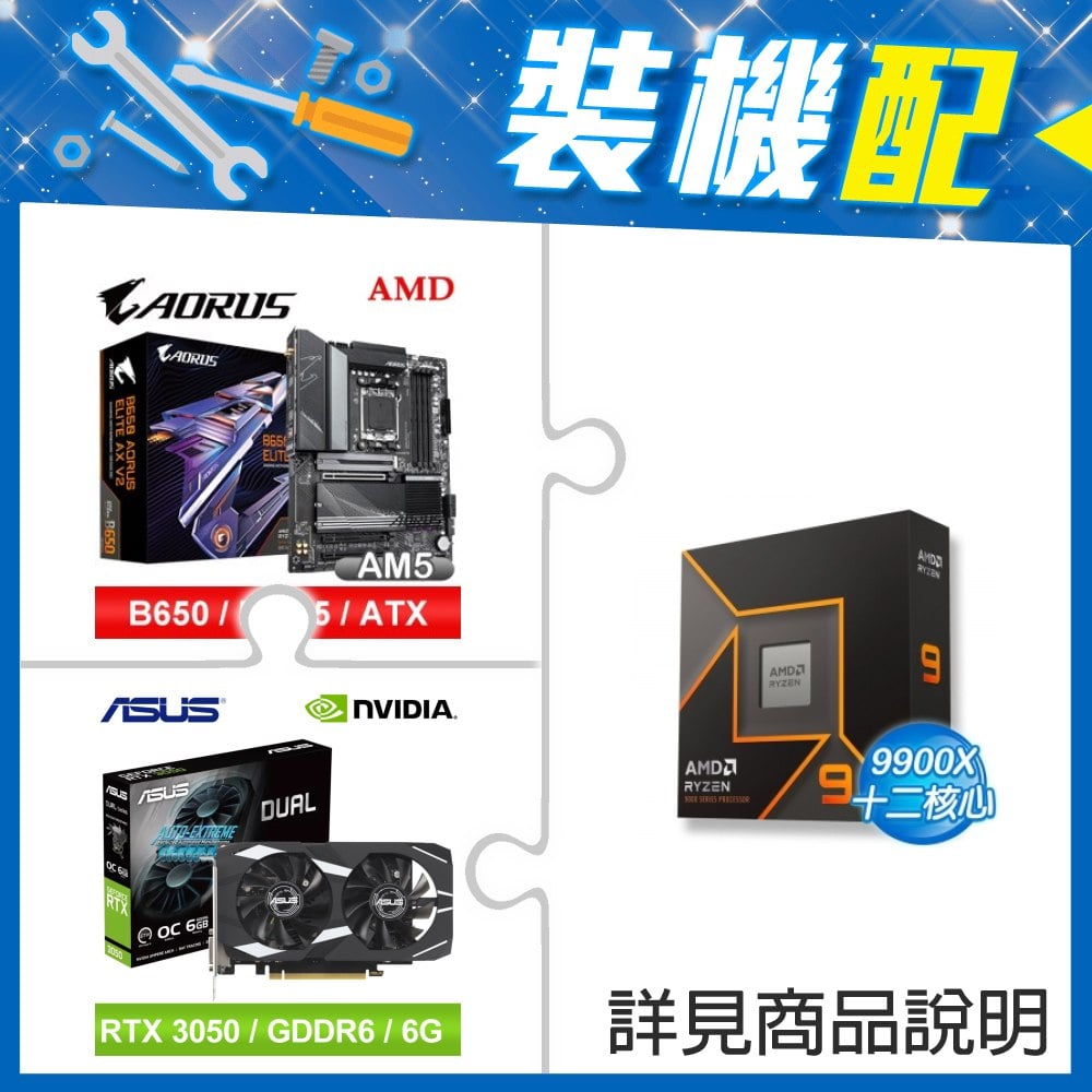 ☆裝機配★ AMD R9 9900X+技嘉 B650 AORUS ELITE AX V2 D5 ATX主機板+華碩 DUAL-RTX3050-O6G 顯示卡