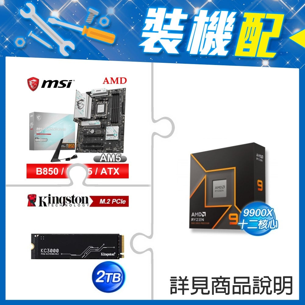 ☆裝機配★ AMD R9 9900X+微星 B850 GAMING PLUS WIFI ATX主機板+金士頓 KC3000 2TB PCIe 4.0 NVMe M.2 SSD