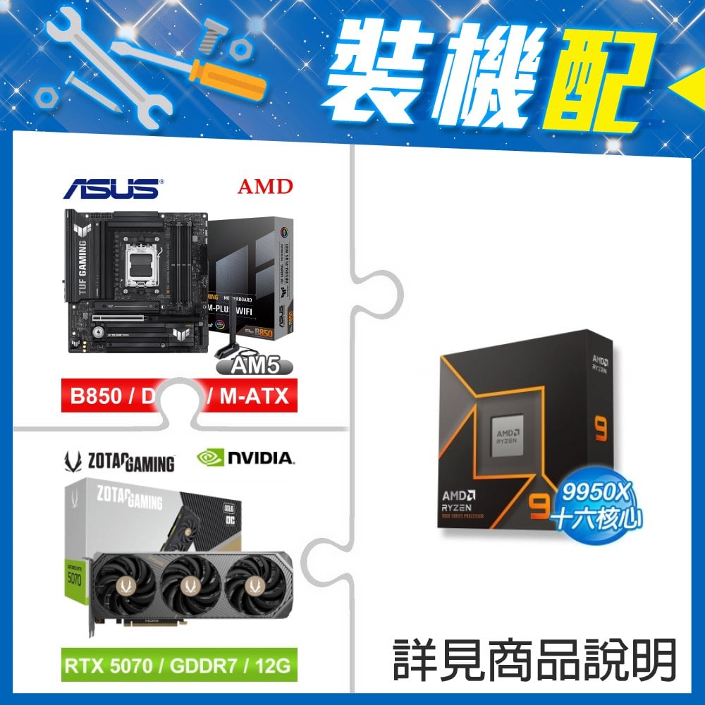 ☆裝機配★ AMD R9 9950X+華碩 TUF GAMING B850-PLUS WIFI ATX主機板+索泰 RTX 5070 SOLID OC 12G 顯示卡