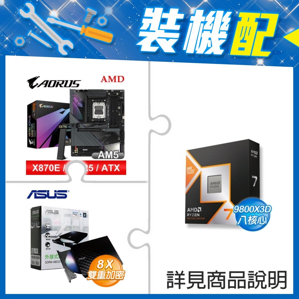 ☆裝機配★ AMD R7 9800X3D+技嘉 X870E AORUS MASTER ATX主機板+華碩 SDRW-08D2S-U 外接式燒錄機《黑》