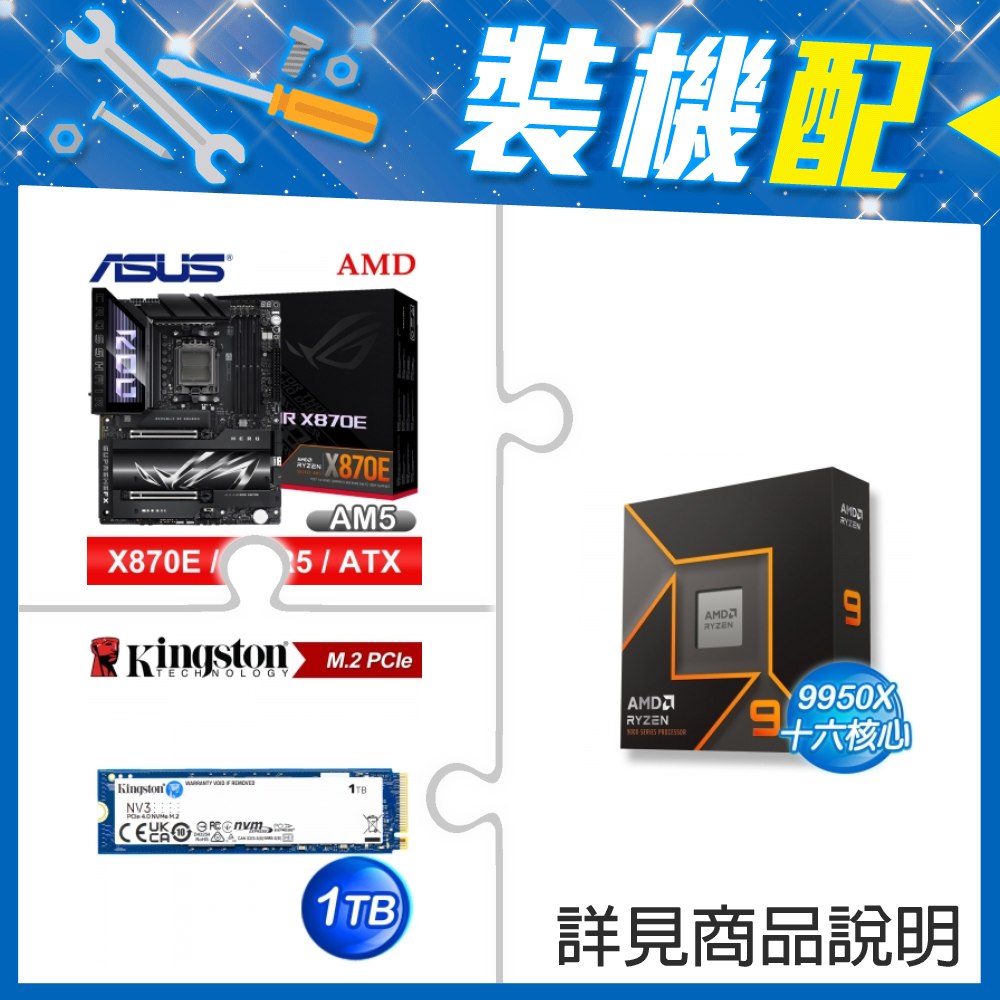 ☆裝機配★ AMD R9 9950X+華碩 ROG CROSSHAIR X870E HERO ATX主機板+金士頓 NV3 1TB M.2 PCIe SSD