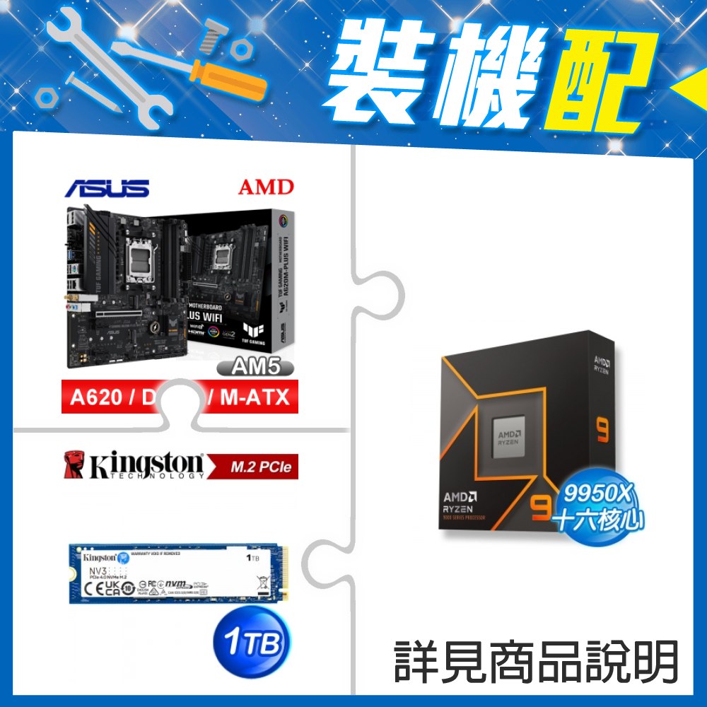 ☆裝機配★ AMD R9 9950X+華碩 TUF GAMING A620M-PLUS WIFI MATX主機板+金士頓 NV3 1TB M.2 PCIe SSD