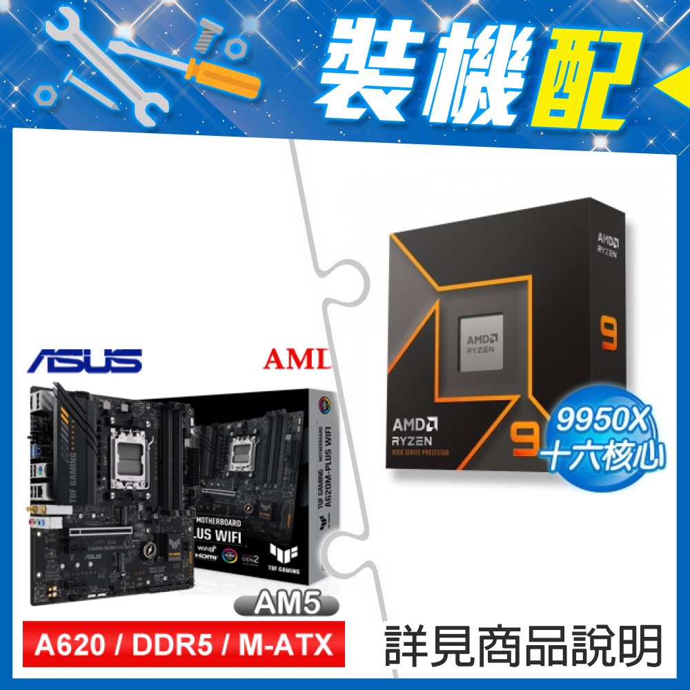 ☆裝機配★ AMD R9 9950X+華碩 TUF GAMING A620M-PLUS WIFI MATX主機板