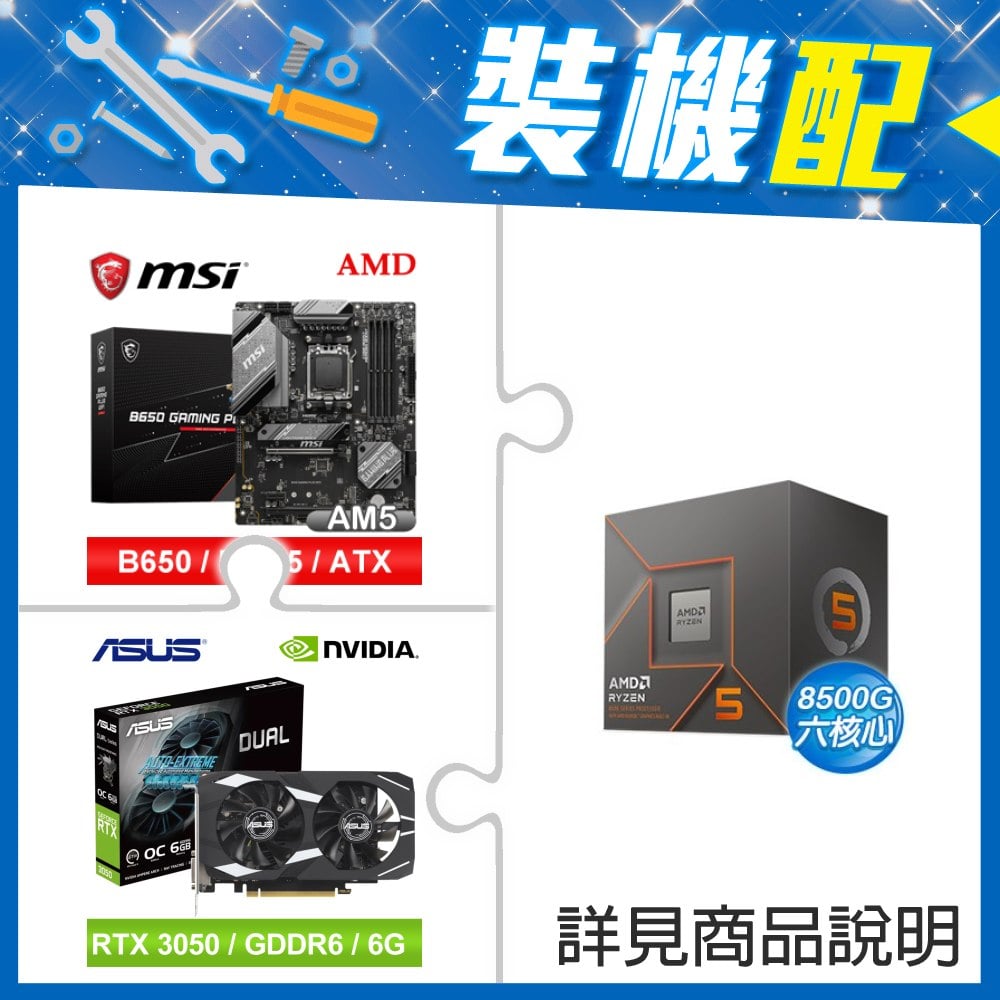 ☆裝機配★ AMD R5 8500G+微星 B650 GAMING PLUS WIFI D5 ATX主機板+華碩 DUAL-RTX3050-O6G 顯示卡
