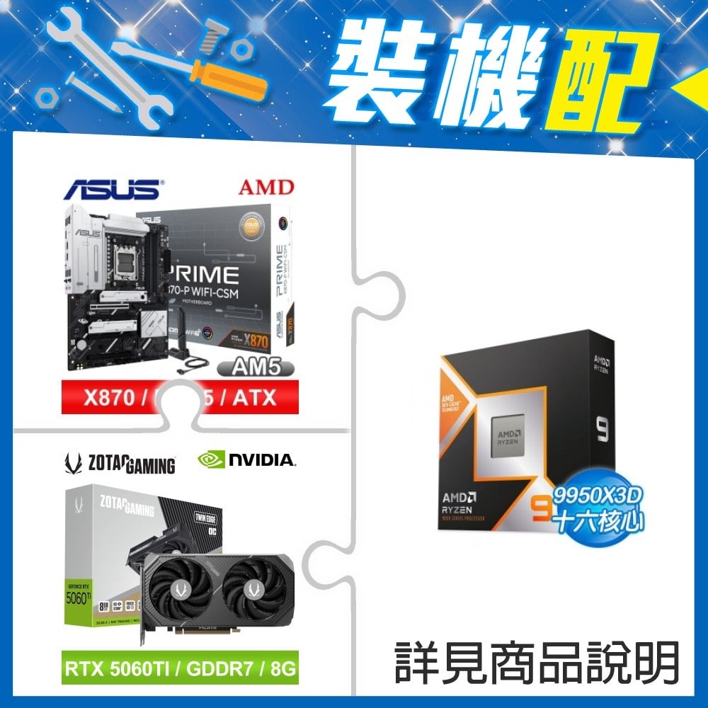 ☆裝機配★ AMD R9 9950X3D+華碩 PRIME X870-P WIFI-CSM ATX主機板+索泰 RTX 5060 TI 8GB Twin Edge OC 顯示卡