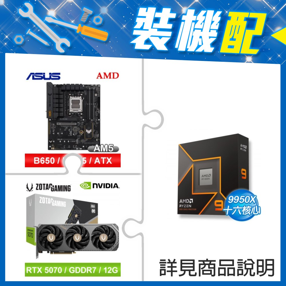 ☆裝機配★ AMD R9 9950X+華碩 TUF GAMING B650-PLUS WIFI ATX主機板+索泰 RTX 5070 SOLID OC 12G 顯示卡