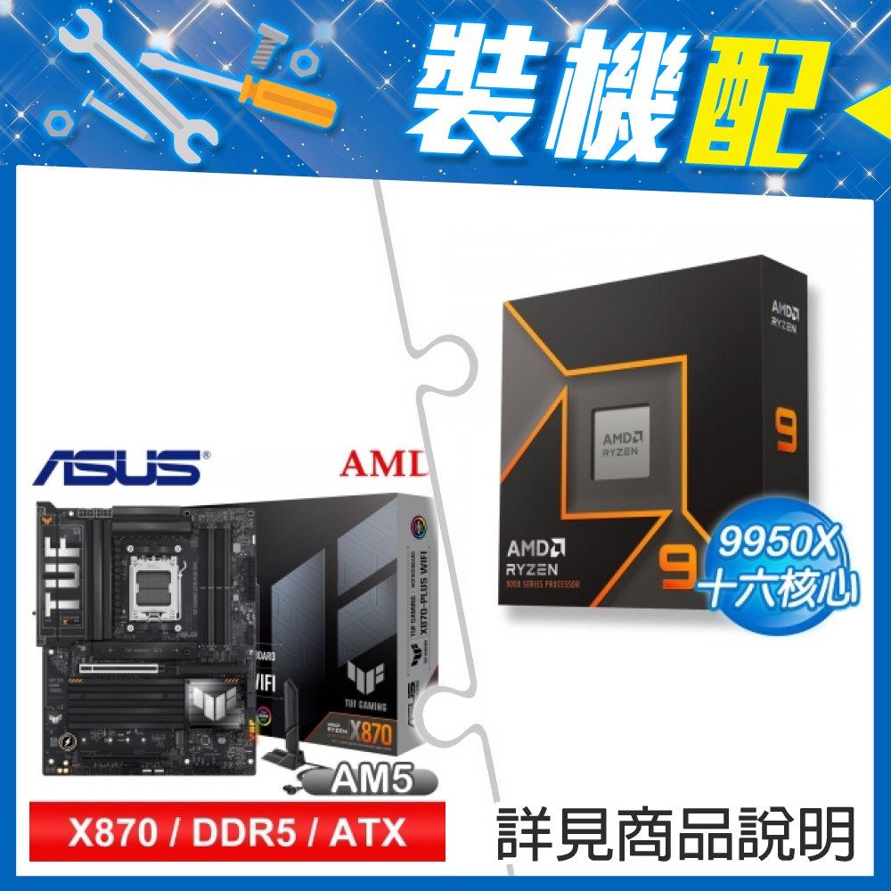 ☆裝機配★ AMD R9 9950X+華碩 TUF GAMING X870-PLUS WIFI ATX主機板