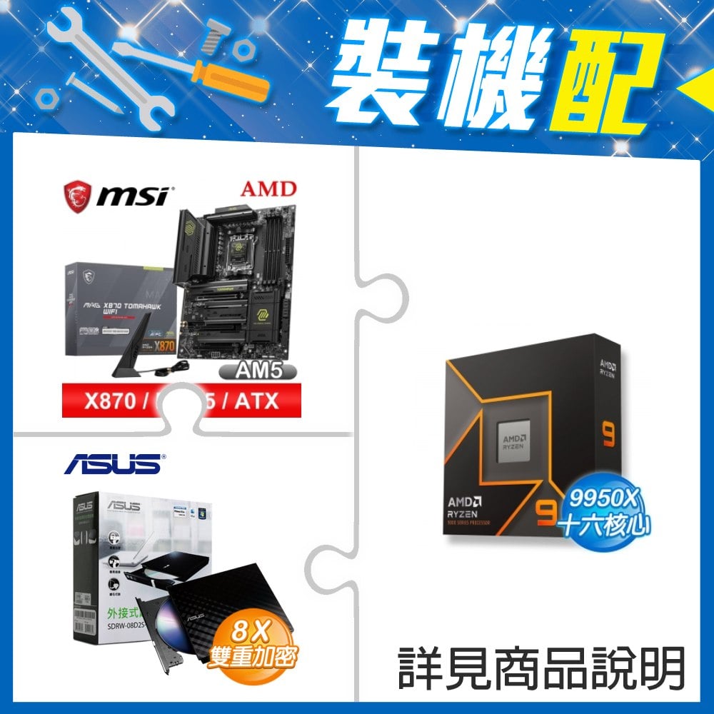 ☆裝機配★ AMD R9 9950X+微星 MAG X870 TOMAHAWK WIFI ATX主機板+華碩 SDRW-08D2S-U 外接式燒錄機《黑》