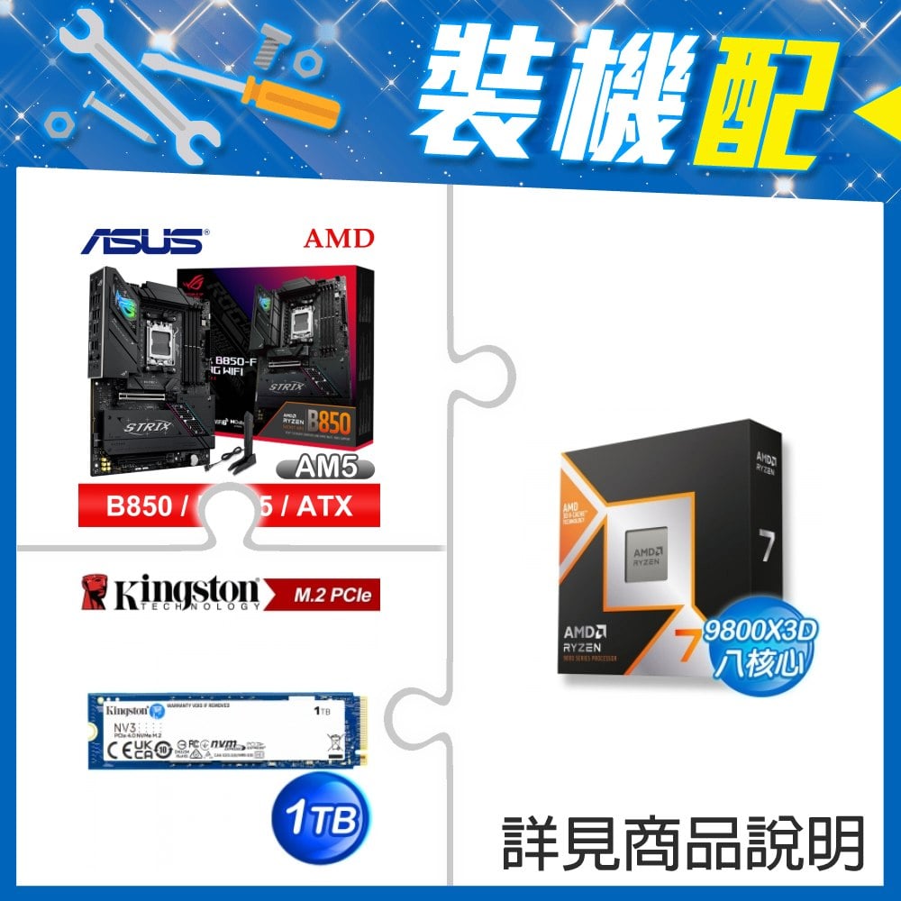 ☆裝機配★ AMD R7 9800X3D+華碩 ROG STRIX B850-F GAMING WIFI ATX主機板+金士頓 NV3 1TB M.2 PCIe SSD