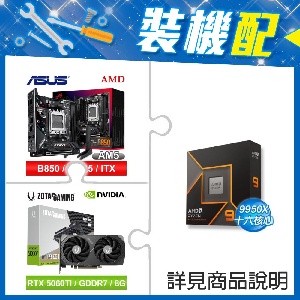 ☆裝機配★ AMD R9 9950X+華碩 ROG STRIX B850-I GAMING WIFI ITX主機板+索泰 RTX 5060 TI 8GB Twin Edge OC 顯示卡