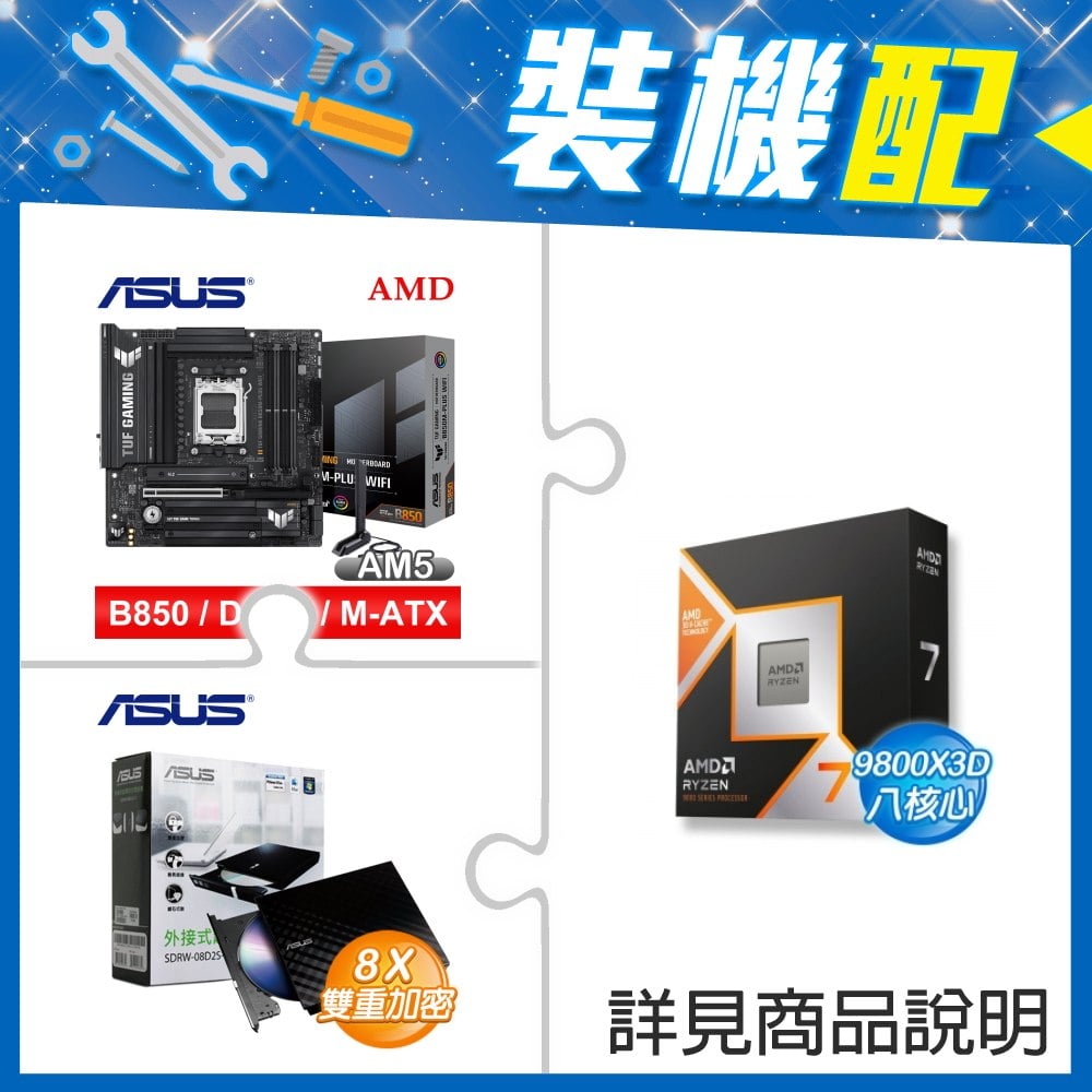 ☆裝機配★ AMD R7 9800X3D+華碩 TUF GAMING B850M-PLUS WIFI MATX主機板+華碩 SDRW-08D2S-U 外接式燒錄機《黑》