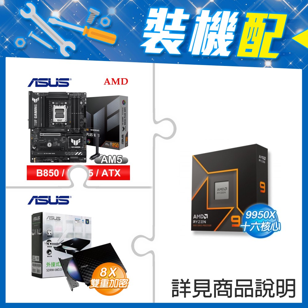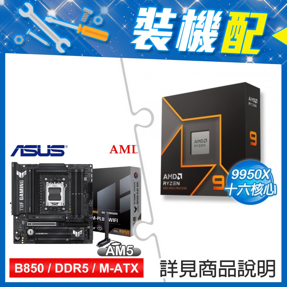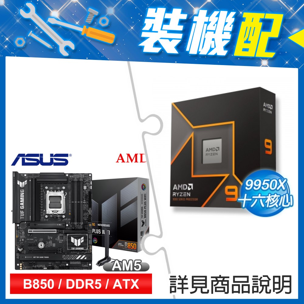 ☆裝機配★ AMD R9 9950X+華碩 TUF GAMING B850-PLUS WIFI ATX主機板