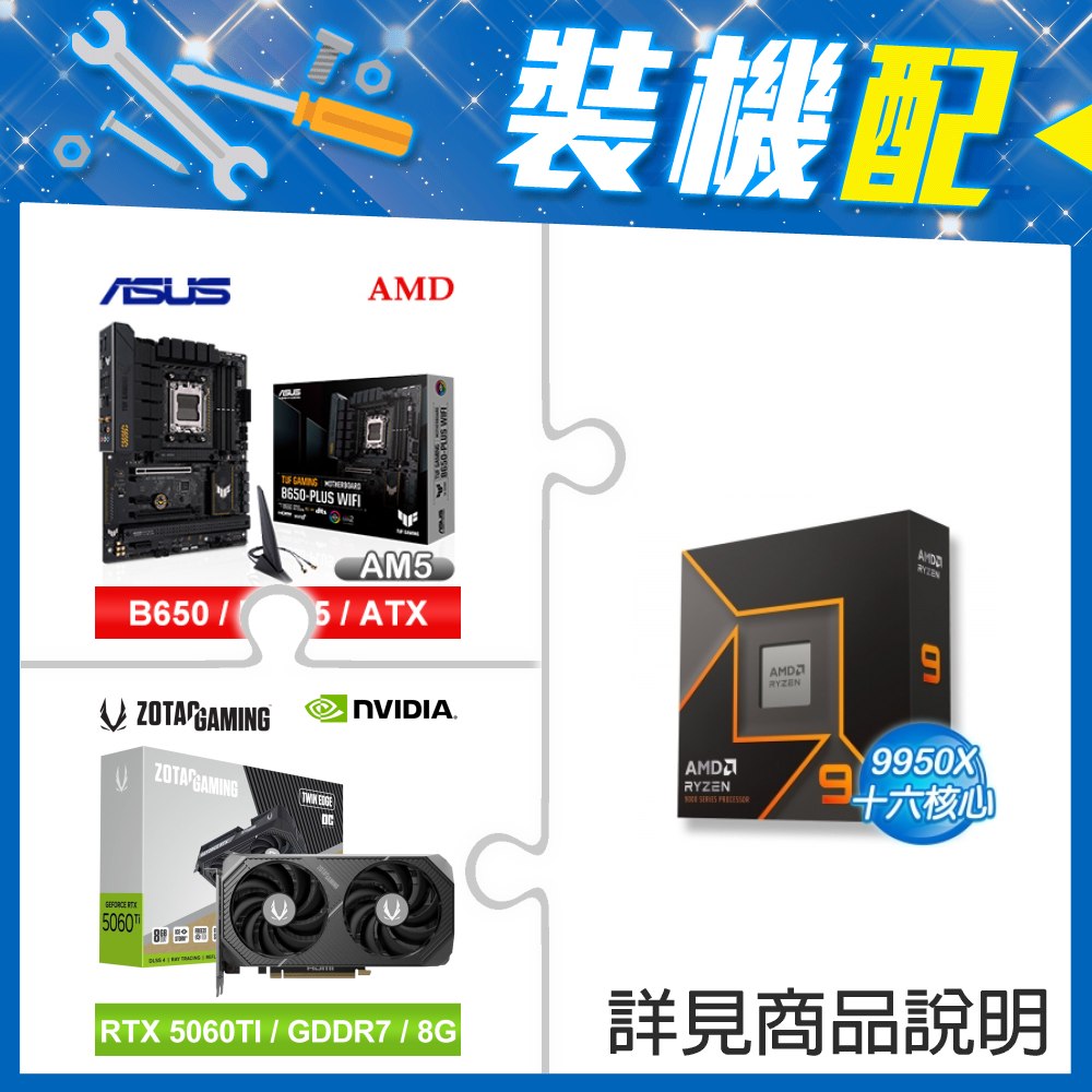 ☆裝機配★ AMD R9 9950X+華碩 TUF GAMING B650-PLUS WIFI ATX主機板+索泰 RTX 5060 TI 8GB Twin Edge OC 顯示卡