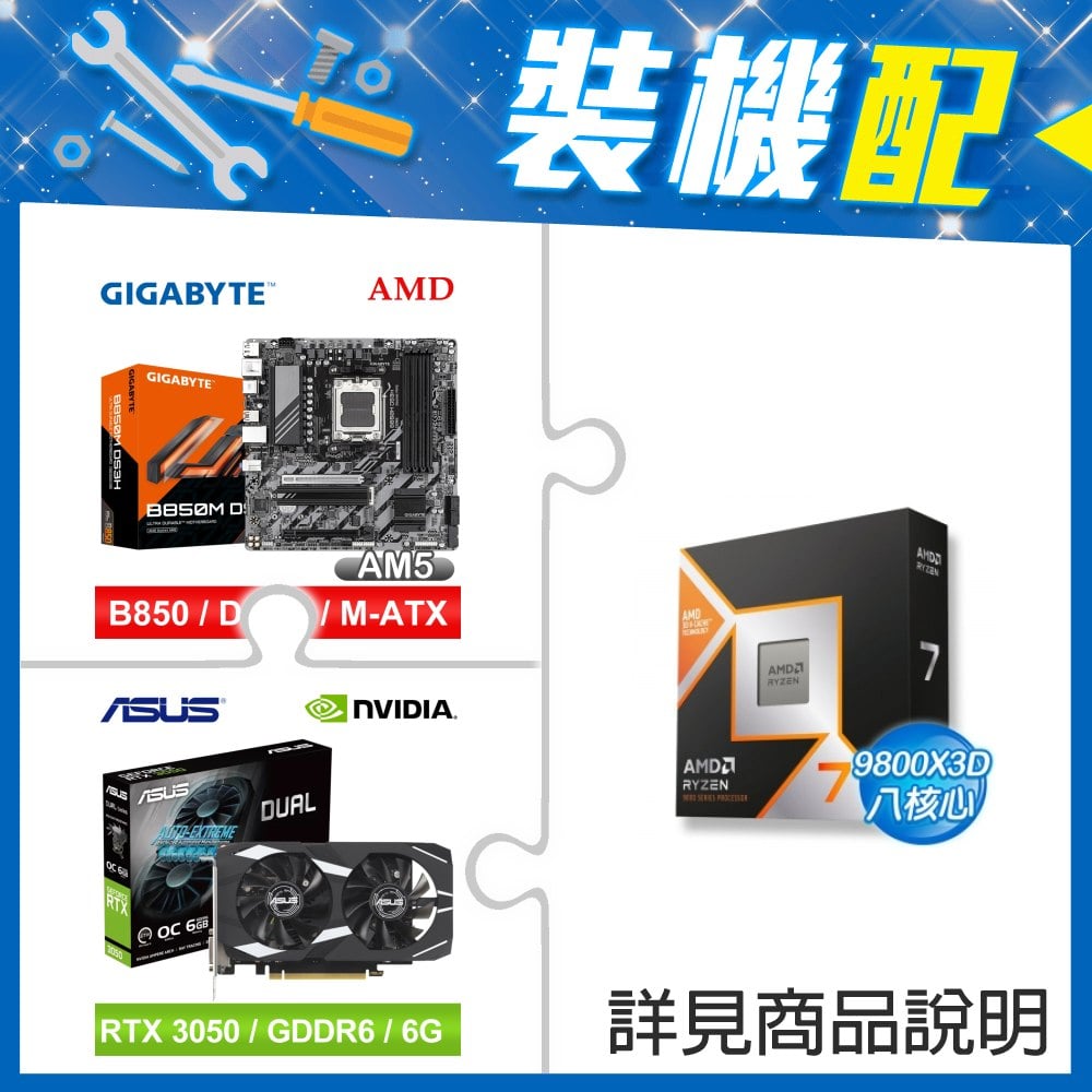 ☆裝機配★ AMD R7 9800X3D+技嘉 B850M DS3H MATX主機板+華碩 DUAL-RTX3050-O6G 顯示卡