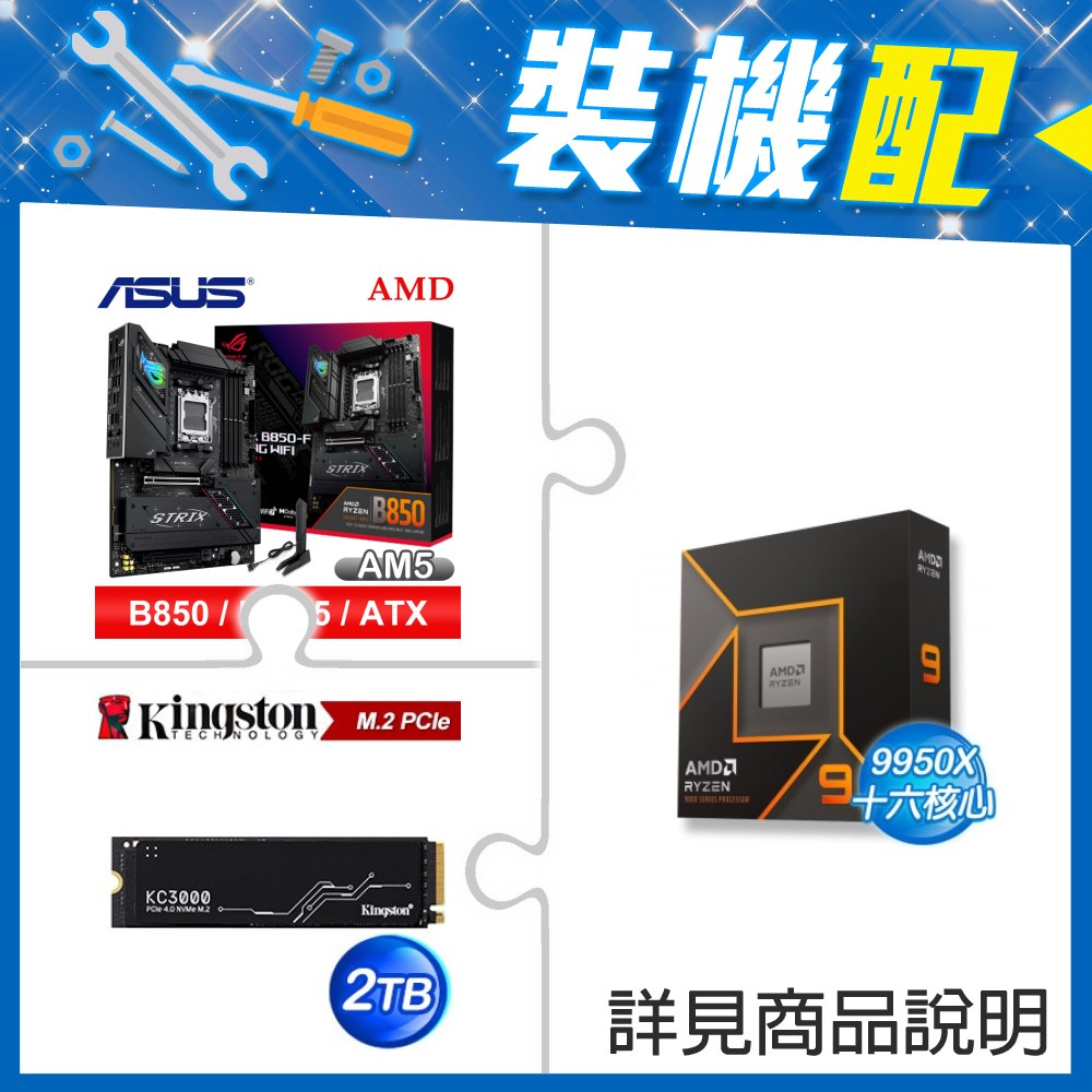 ☆裝機配★ AMD R9 9950X+華碩 ROG STRIX B850-F GAMING WIFI ATX主機板+金士頓 KC3000 2TB PCIe 4.0 NVMe M.2 SSD