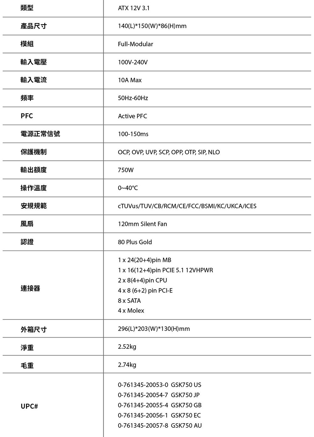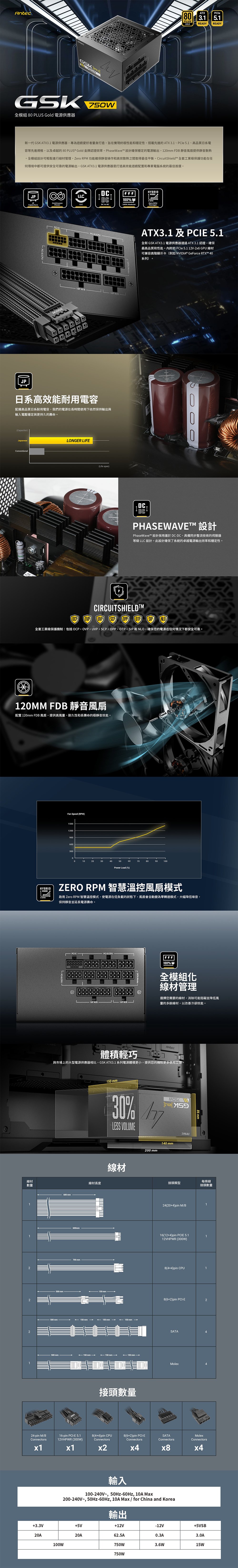 • 全新 GSK Gold 搭載先進的 ATX3.1、PCIe 5.1