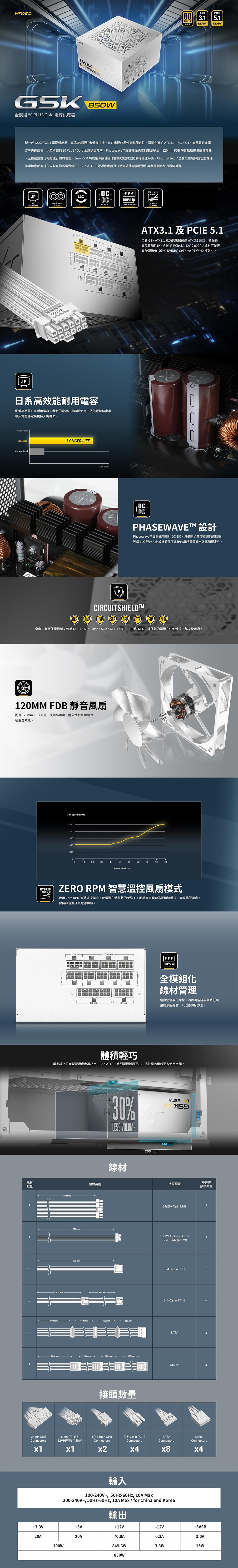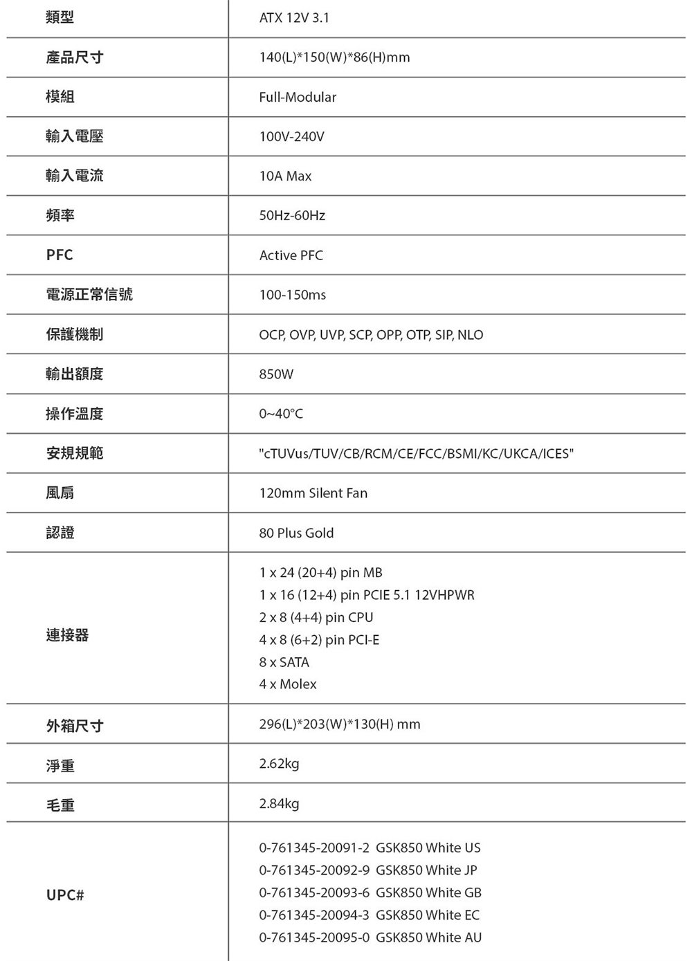 - 全新 GSK Gold 搭載先進的 ATX3.1、PCIe 5.1