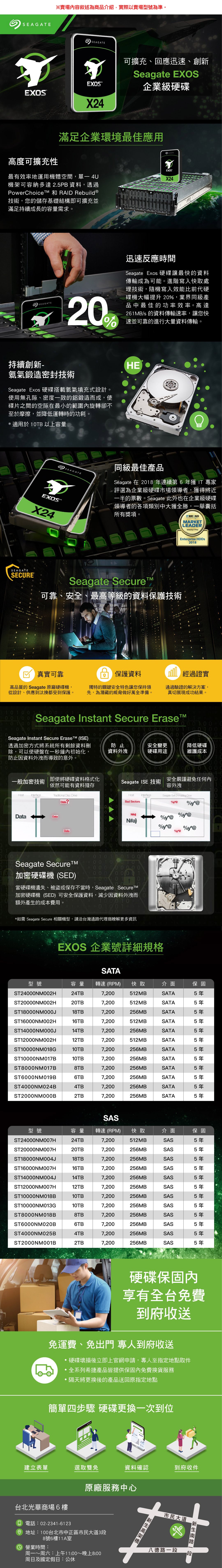 Seagate 希捷 企業號 20TB 3.5吋 7200轉 256M快取 SATA3 EXOS企業級硬碟(ST20000NM007D-5Y)