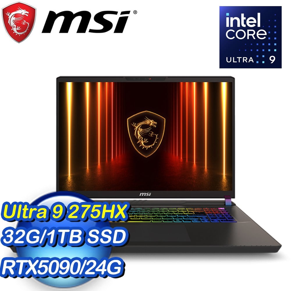 MSI 微星 Vector 17 HX AI A2XWJG-066TW 電競筆電(Ultra 9-275HX/RTX5090 24G/32GB DDR5/1TB PCIe/17.3吋)