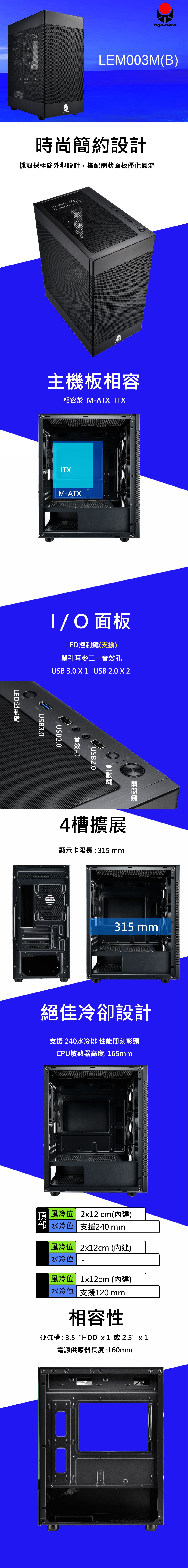 視博通【LEM003M(B)】網孔 M-ATX機殼《黑》(顯卡29.5/CPU高16.5)
