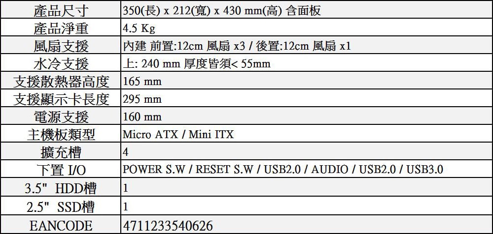 - 前置附12cm 風扇 x3, 有效幫助系統散熱