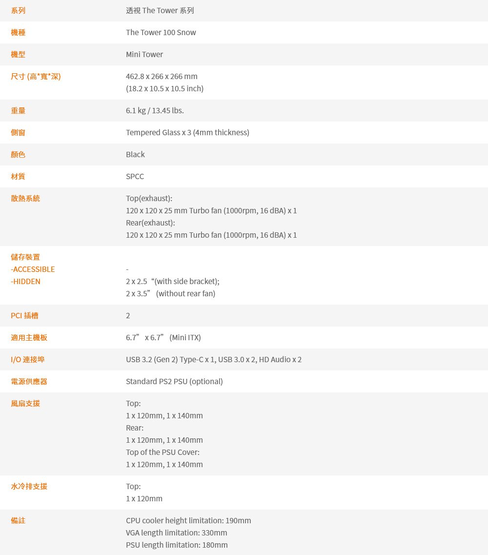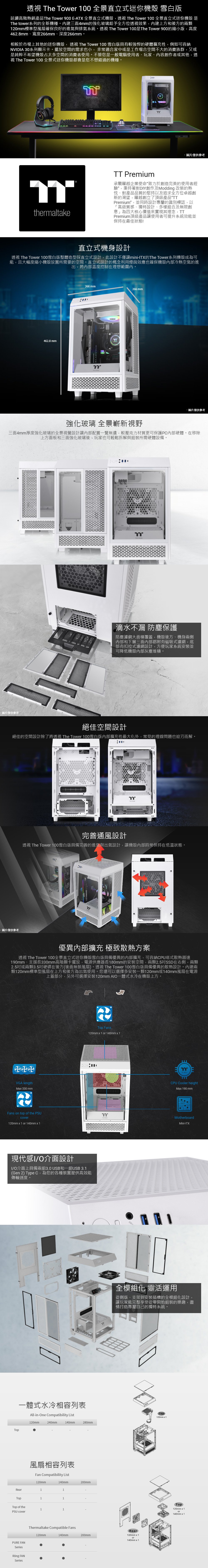 Thermaltake 曜越【The Tower 100】三面玻璃透側 ITX機殼《白》(顯卡33)