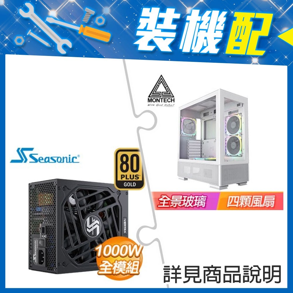 ☆裝機配★ MONTECH【SKY TWO】玻璃透側 ATX機殼《白》+海韻 Vertex GX-1000 金牌 全模組 ATX3.0
