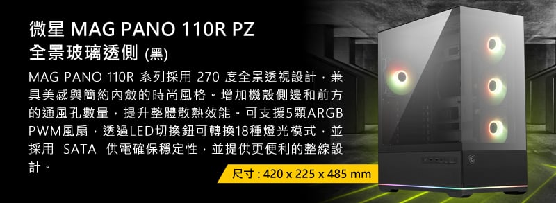 - 電腦機殼:微星 MAG PANO 110R PZ 全景玻璃透側 ATX 黑