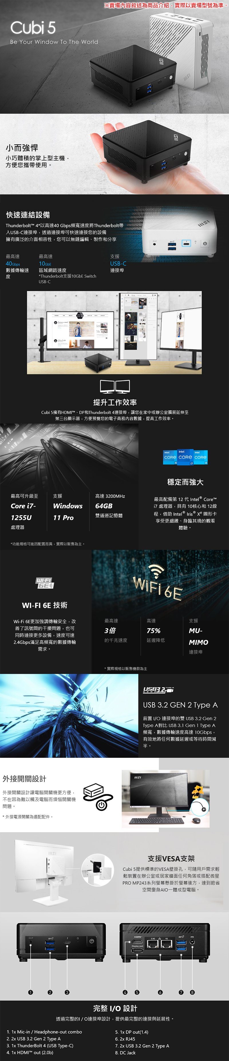 - 準系統:MSI Cubi 5 12M-011BTW-B51235UXX