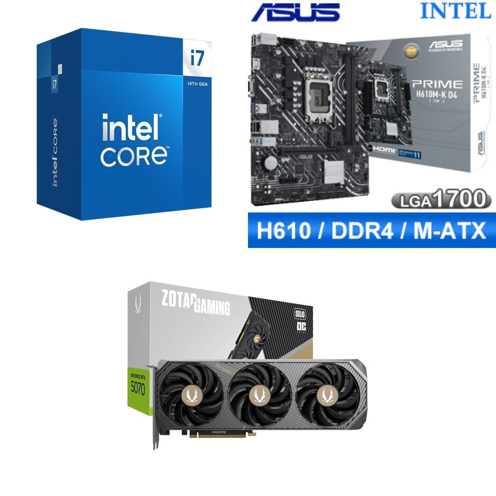 ☆裝機配★ i7-14700F+華碩 PRIME H610M-K D4-CSM M-ATX主機板+索泰 RTX 5070 SOLID OC 12G 顯示卡